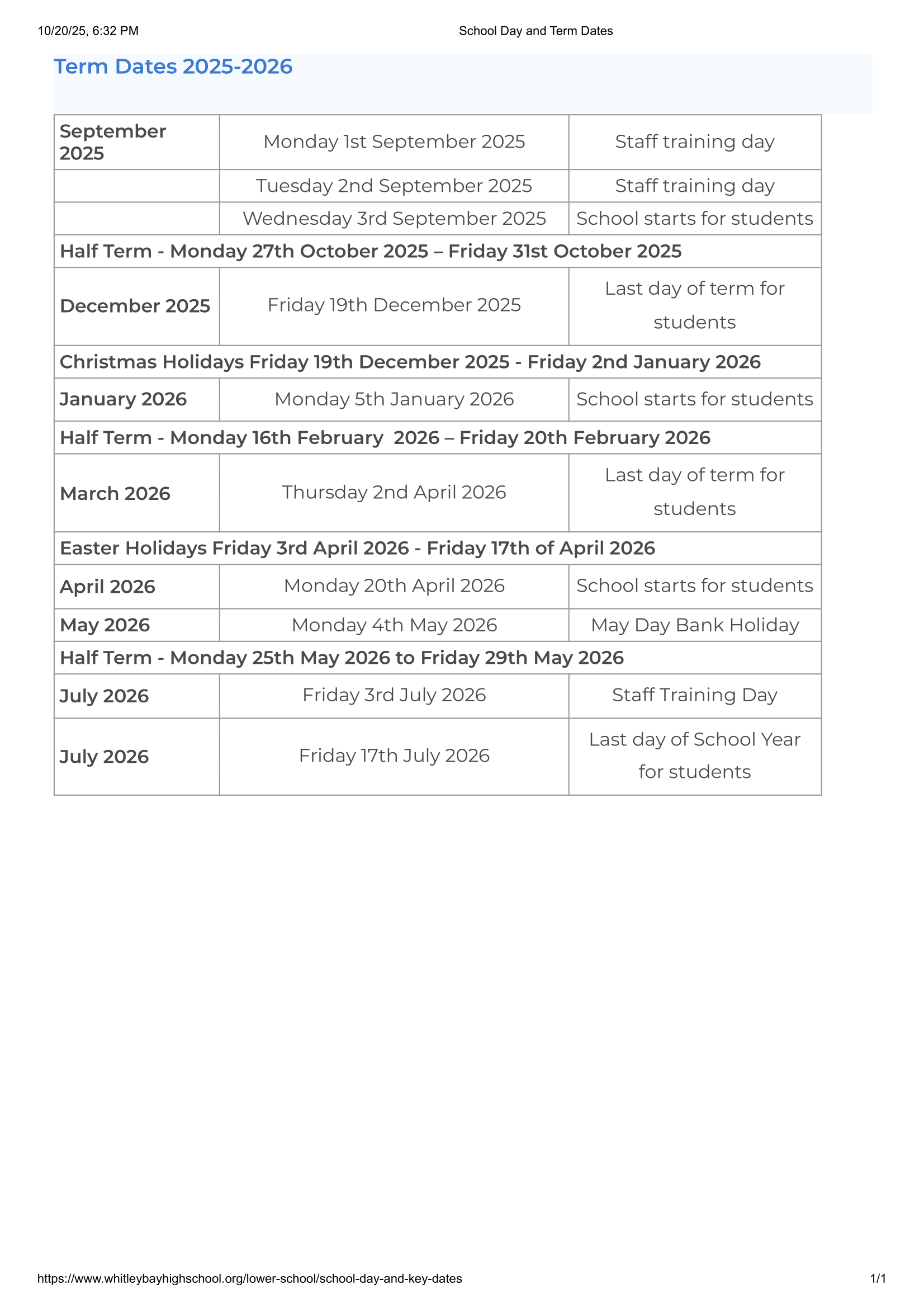 Whitley Bay High School – Term Dates FAQ (2025–2026)
